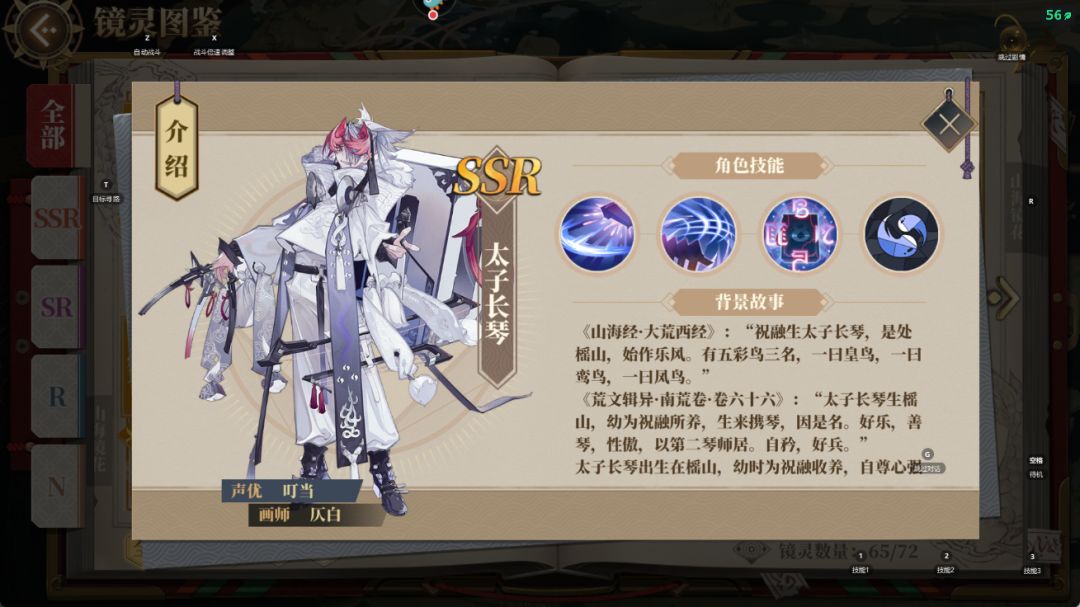 太子长琴:老版山海镜花的必备PVP卡,进可一速开技能封印对面被动,退可开局普攻减对面灵气打乱对面流程,目前还没见有人练起来,且一速目前更适合给蜚或者吃梨去打沉默或者推条,并且目前增加的CD技能流镜灵并不怕减灵气效果,所以强度较比老版可能有所下降。