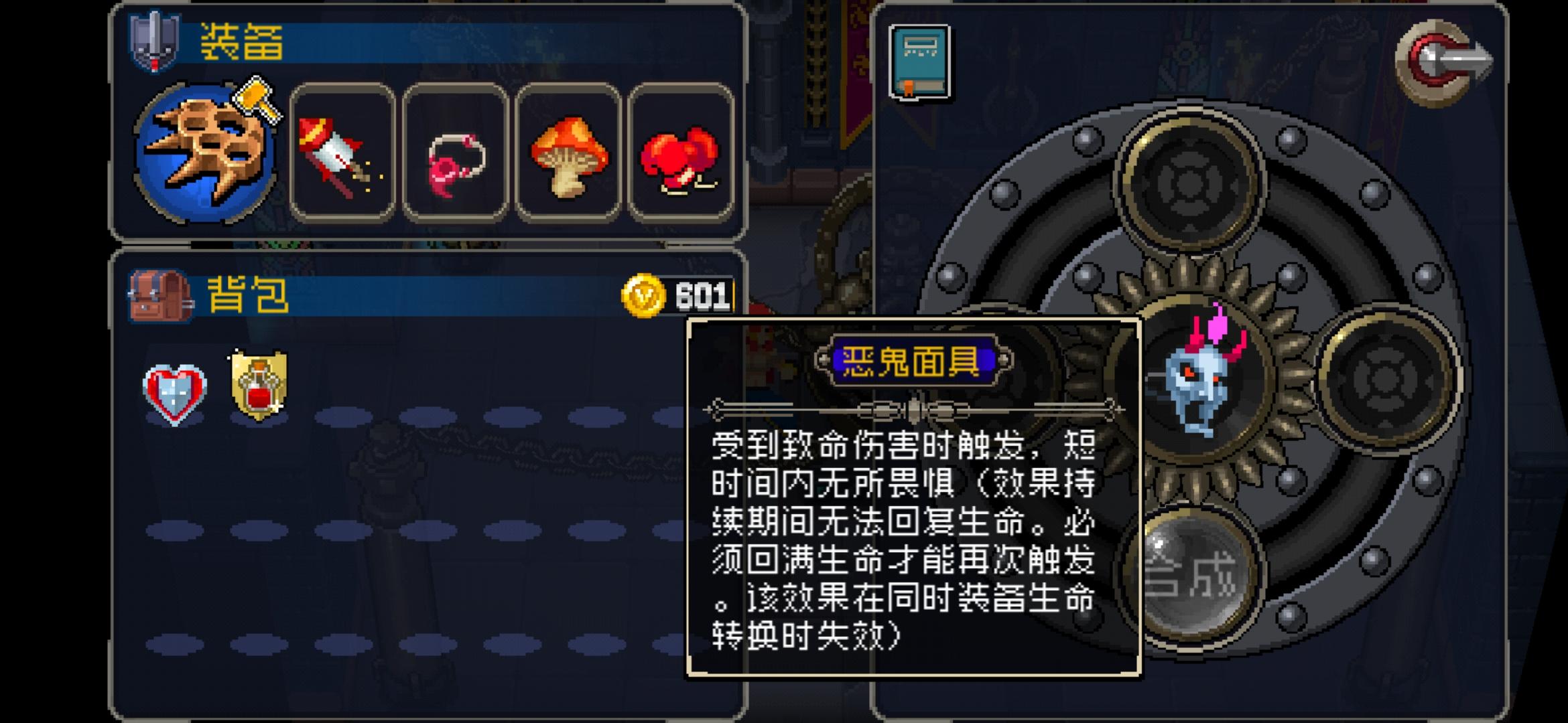 绿色蘑菇(复活蘑菇)必须装备才能生效,放背包是无效的