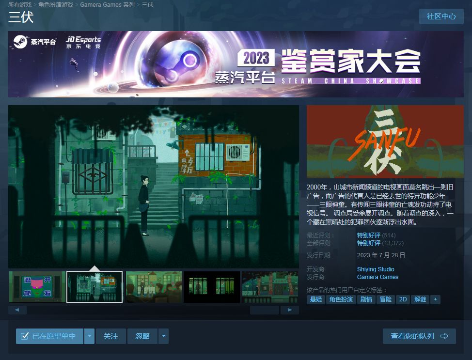 【三伏】,玩过“烟火”,后面就自然关注了月光蟑螂,7月底就上了,没找到时间玩,民俗恐怖YYDS