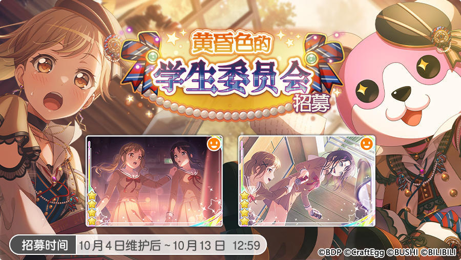 ※本招募附赠「黄昏色的学生委员会招募贴纸」,消耗该贴纸可在「招募贴纸交换所」兑换相应成员或道具!