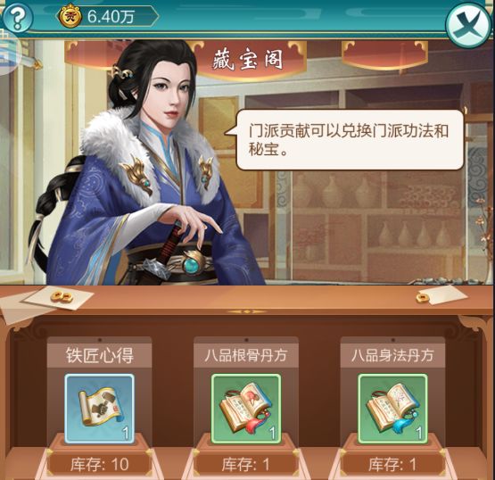 注意:门派贡献可以兑换门派武功和丹方,所以请大侠们根据贡献值合理兑换,优先兑换需要的丹方。