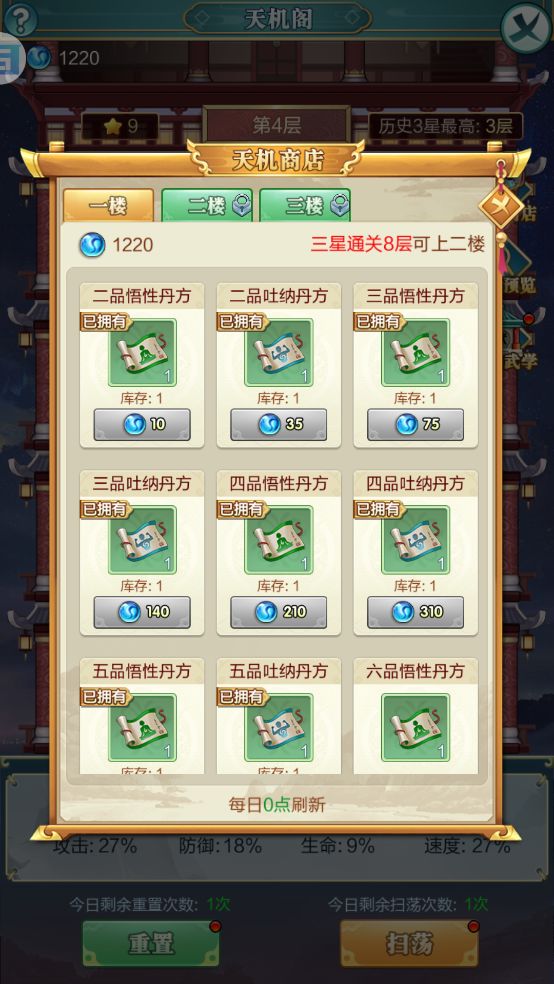 小技巧:丹药练满后可以使用洗髓丹增加丹药上限,部分红颜也有增加丹药上限的技能。