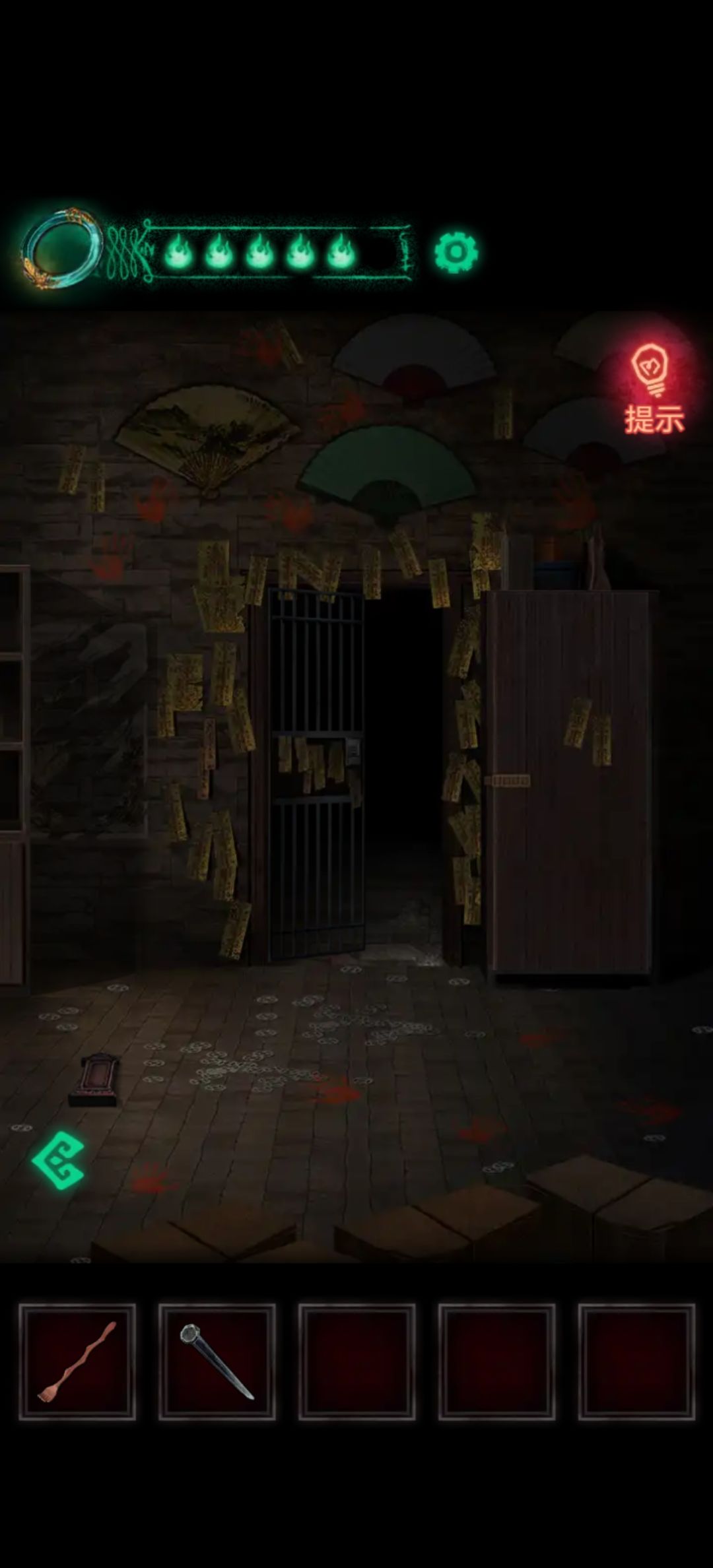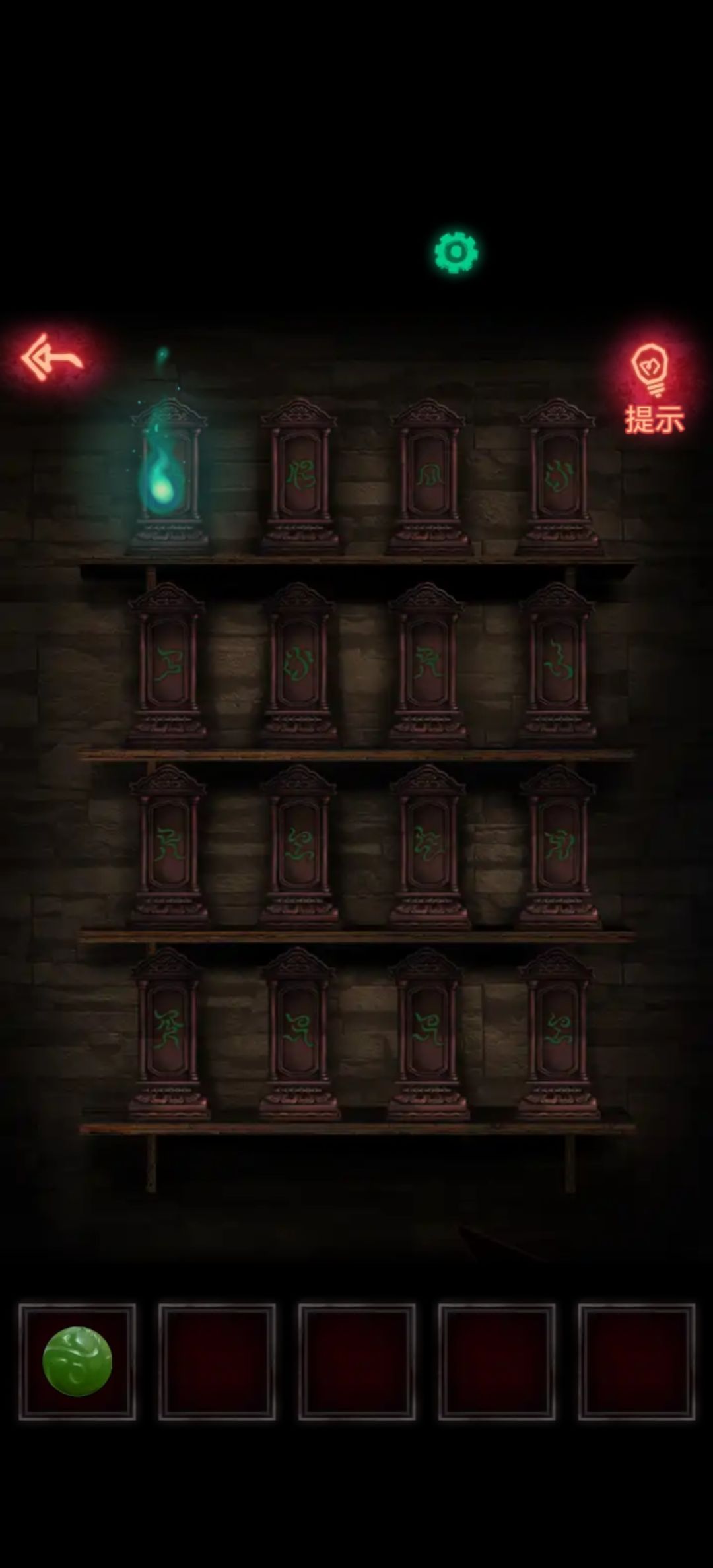 回到地下室找到逃出来的魂魄,点一下魂魄发现魂魄停留在几个特定符号上,小本本记下来!如果实在不想记就气尔秀心(累),回到门口旁边柜子输入这几个密码,打开门就能拿到熊孩子送的弹弓(这要不是知道他来送弹弓还以为是要给我一弹弓)。