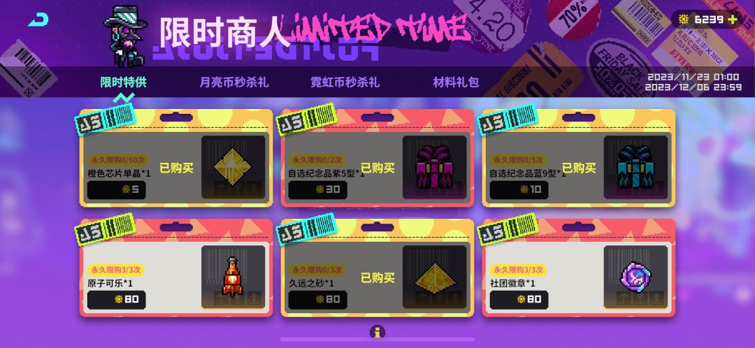 14.周年庆限时商人商店----红叶专用模组3个,金扎专用模组3个,纱夜专用模组3个,