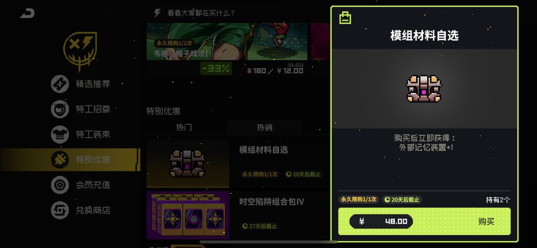 8.商城模组组合礼包48元子1个(氪金),目前共2个,后续有增加在这里更新