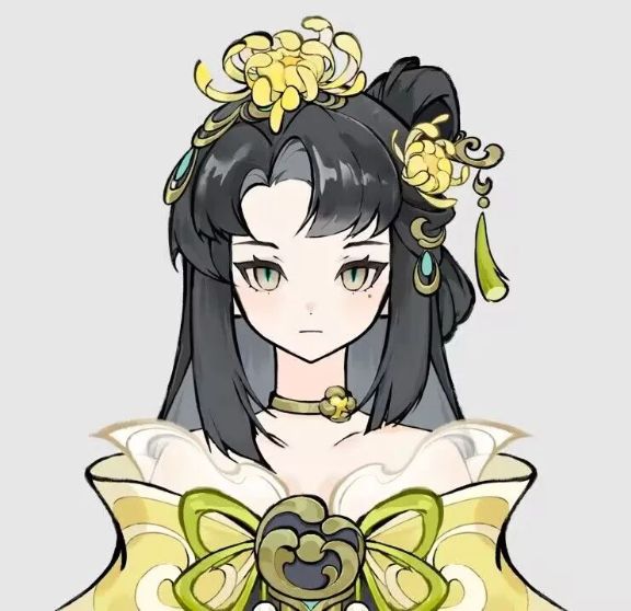 (邀月新时装-[东篱岁晚]概念图,以游戏实际画面为准)