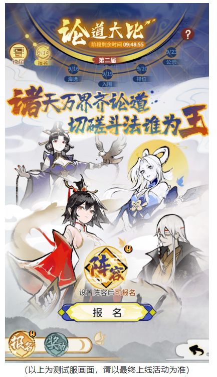 1.报名:参赛者将根据上阵弟子和灵宠的最高境界,被分至不同的组别进行比赛。