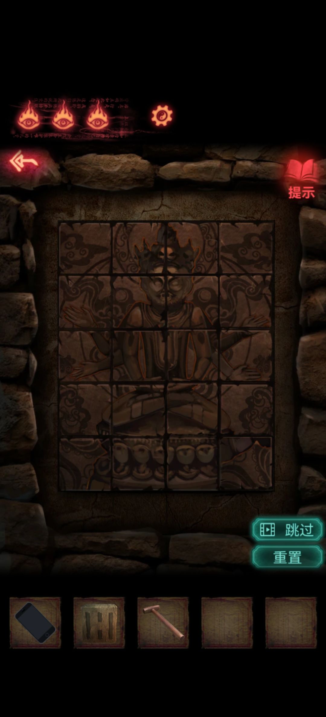 在中间有火把的地方下面是一个拼图,不是很难,从中间开始拼就很容易了。