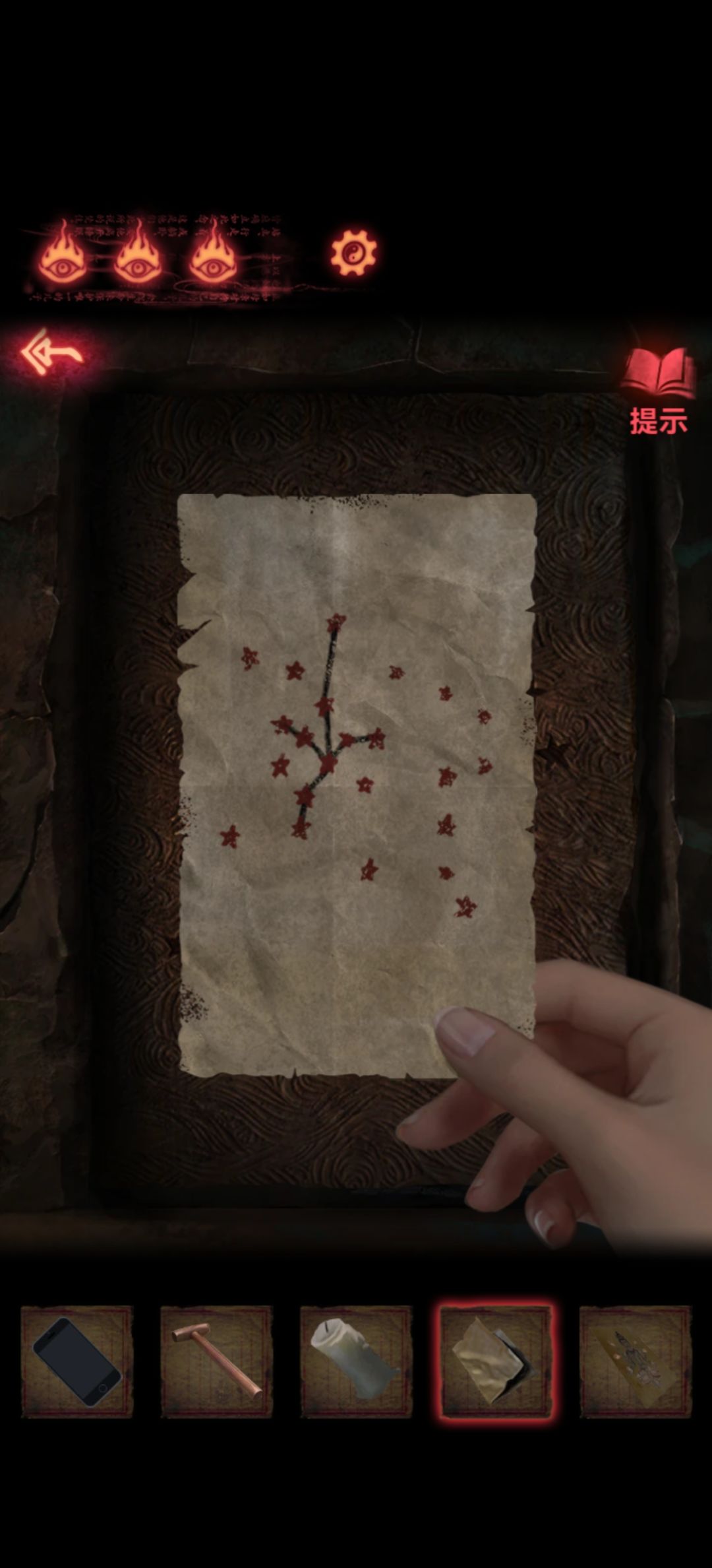 来到最右边门旁边按照星星纸条点亮门上星星打开门,就来到了个更阴间的场景了。
