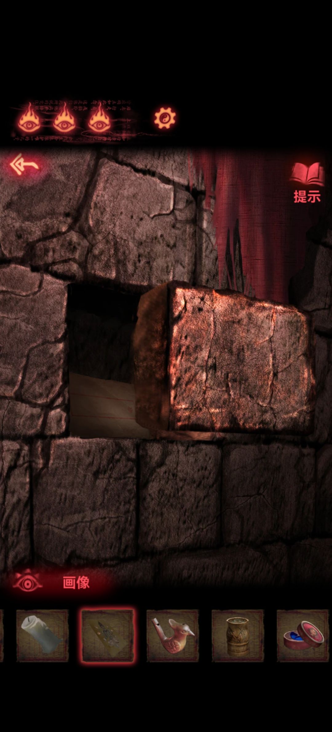 用刚刚不记得上面画着什么的硬纸板插进石砖缝隙,借着地球重力就能把石砖给抽出来了(并不),总之他说能抽就能抽吧,拿到石砖后面藏得锋利铜尺还有一封书信,走之前记得顺手把哨子给女童留下吧。