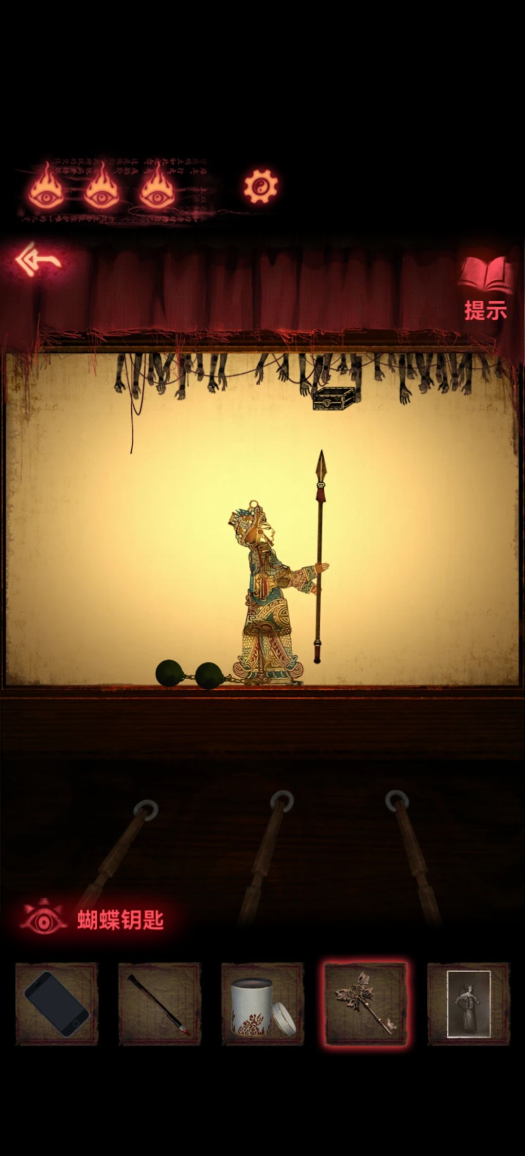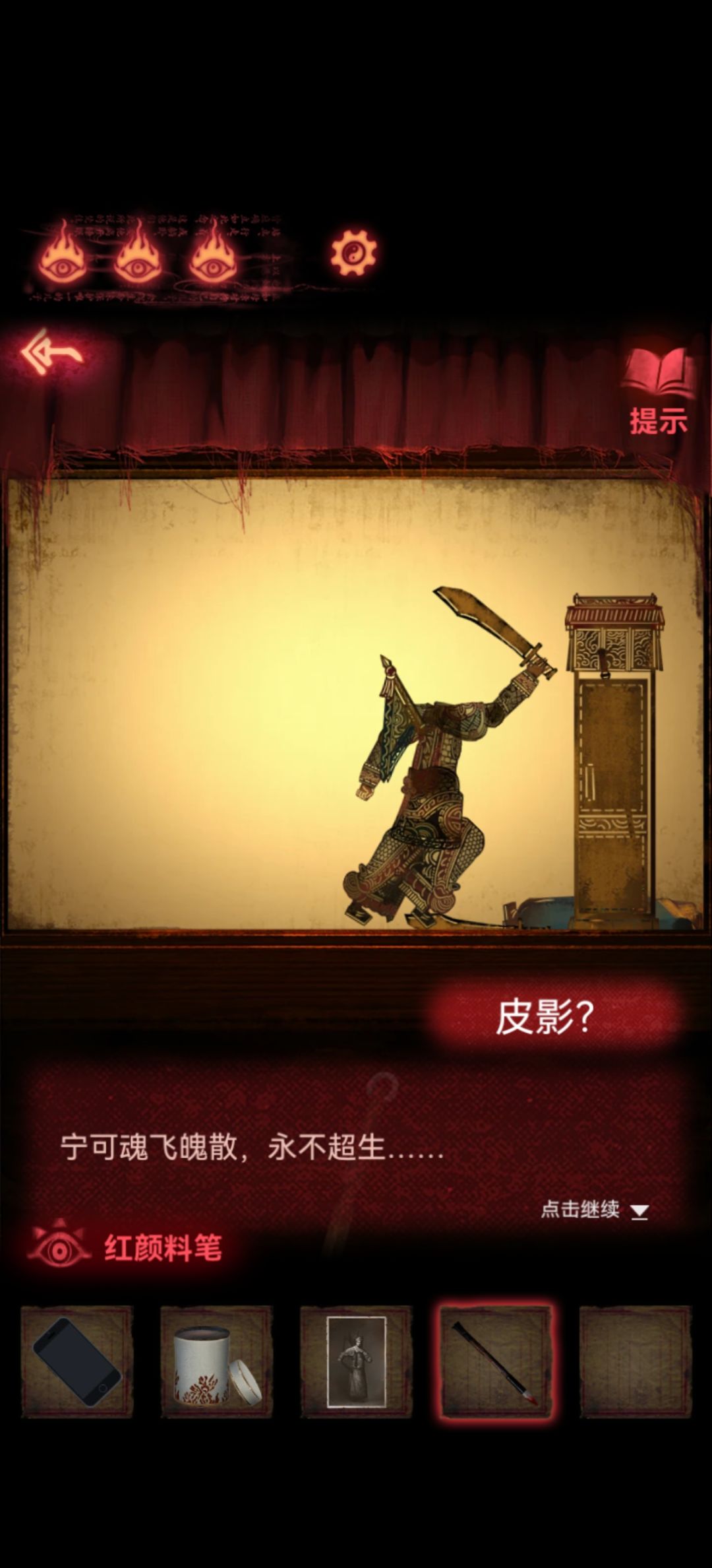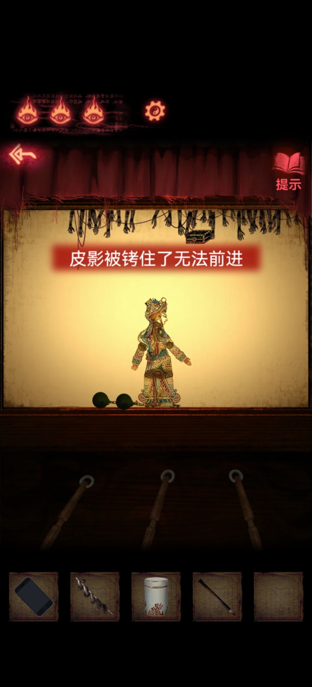 皮影死后我们能控制的就只有皮影戏中间一根控制杆了,不要急不要慌点他就是了,然后就开始剧情模式本章结束~