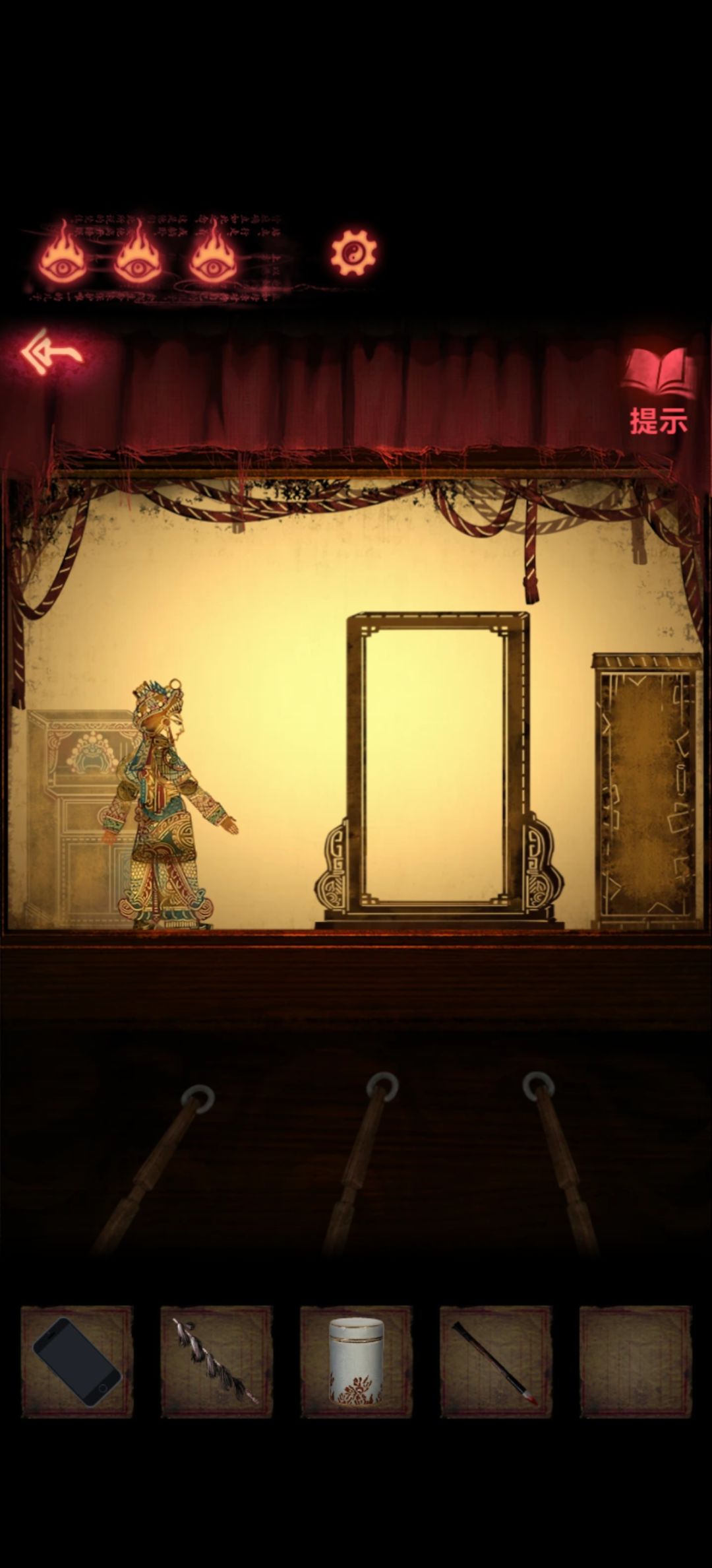 这个场景基本就找干净了转头吧,转头先不着急拉开帘子,看一眼右边有个皮影戏台,后续我们肯定是要做了皮影来这边使用的。