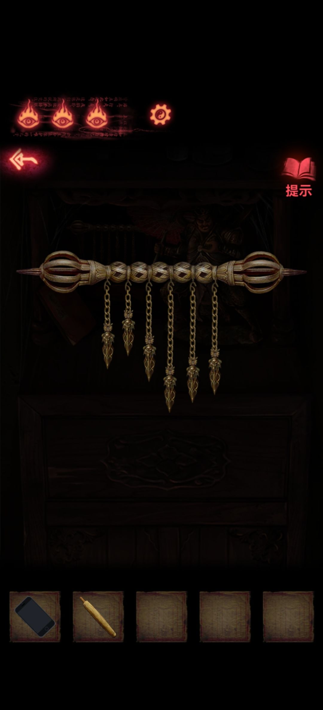 后面还有个带吊坠的金刚杵很容易被漏下,和左边柜子上脸谱一样暂时没有线索先搁置一下。