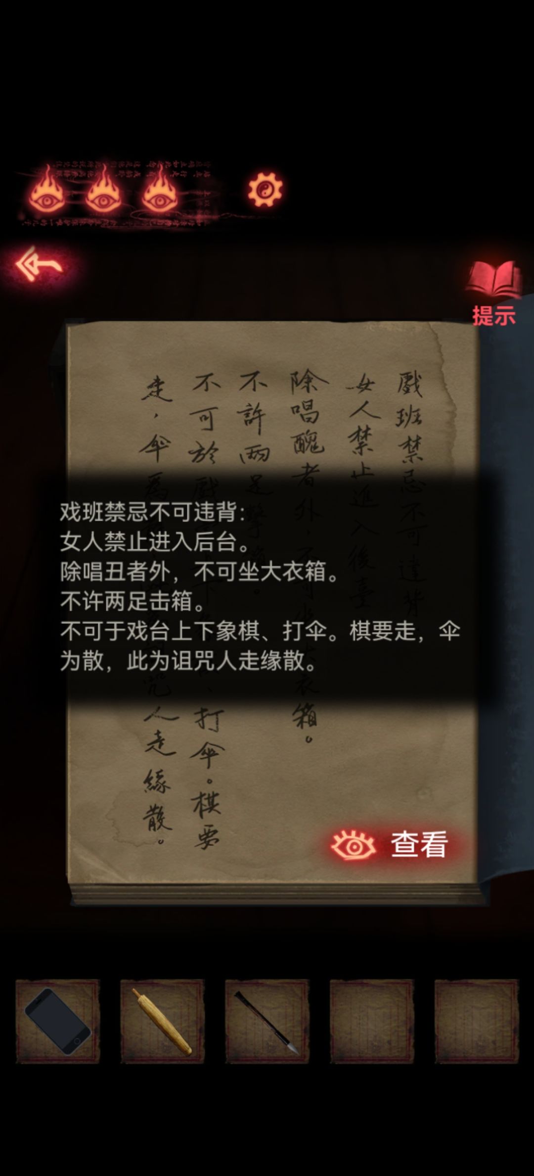 查看旁边书籍看到戏班禁忌:1女子不能进后台2不能坐大衣箱踢箱子3不能下象棋打伞,很明显这些我们都要做。