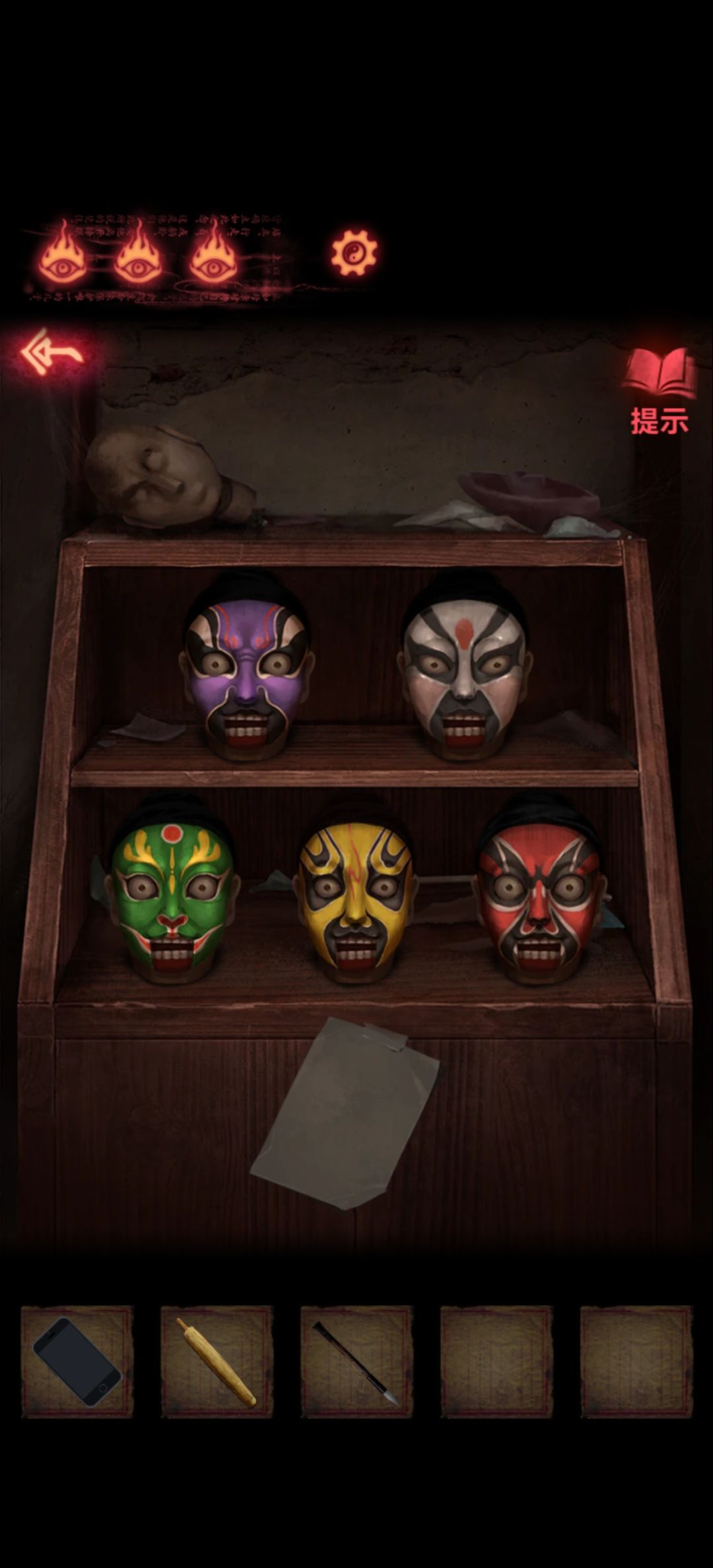回头移动脸谱去,移动完成后脸谱会突然开始动别吓到,动完了之后点脸谱眼睛还会向上下左右看,很明显后续他们还有用处。