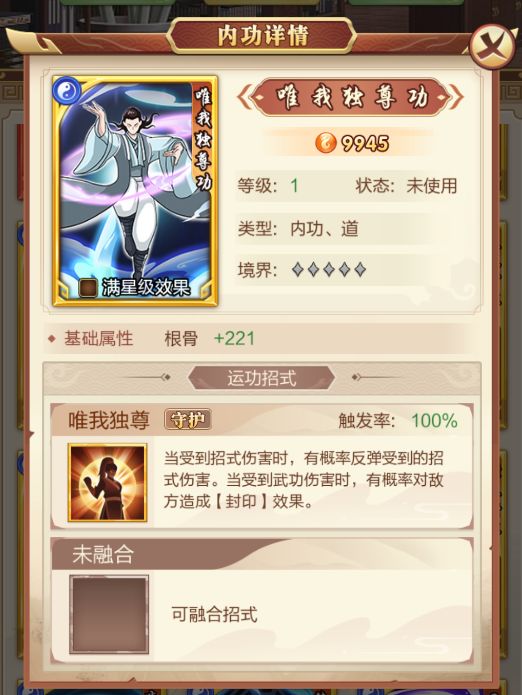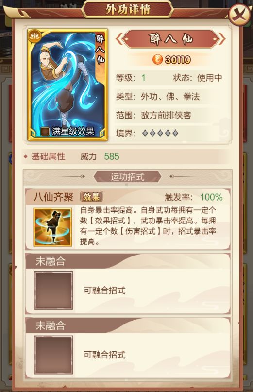 外功小贴士:不上阵的侠客的自带外功可以拆卸下来给上阵侠客使用。