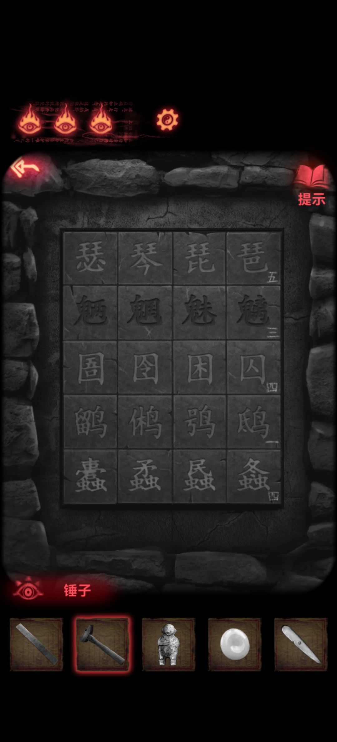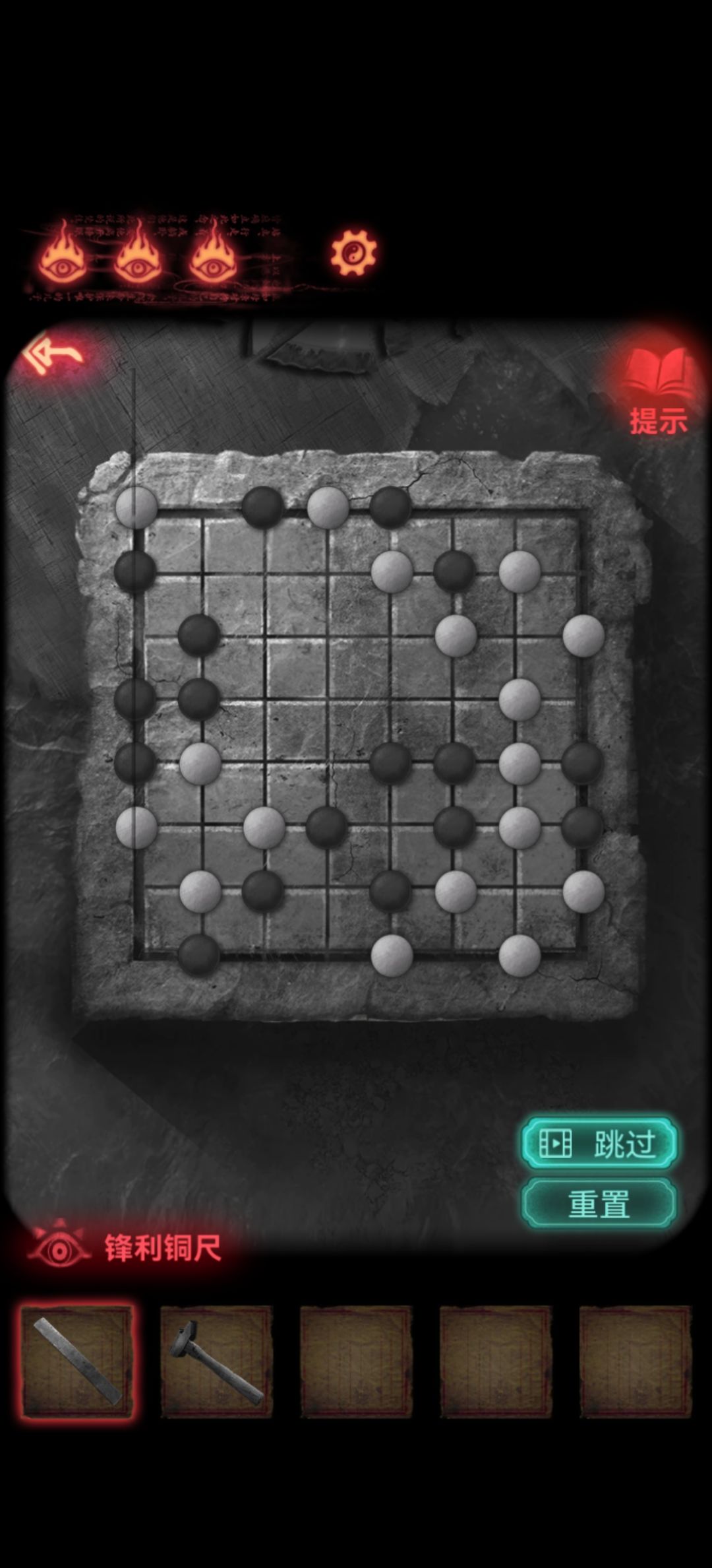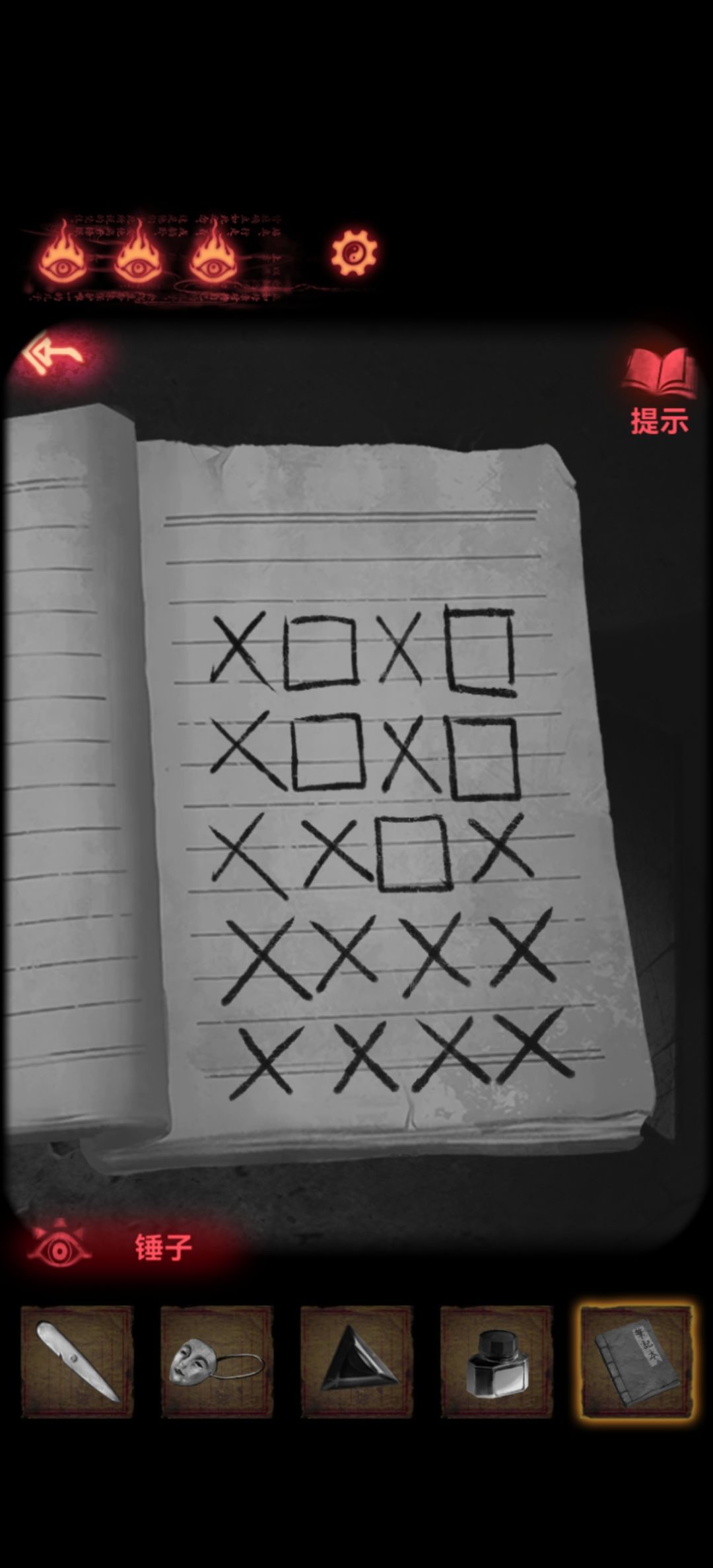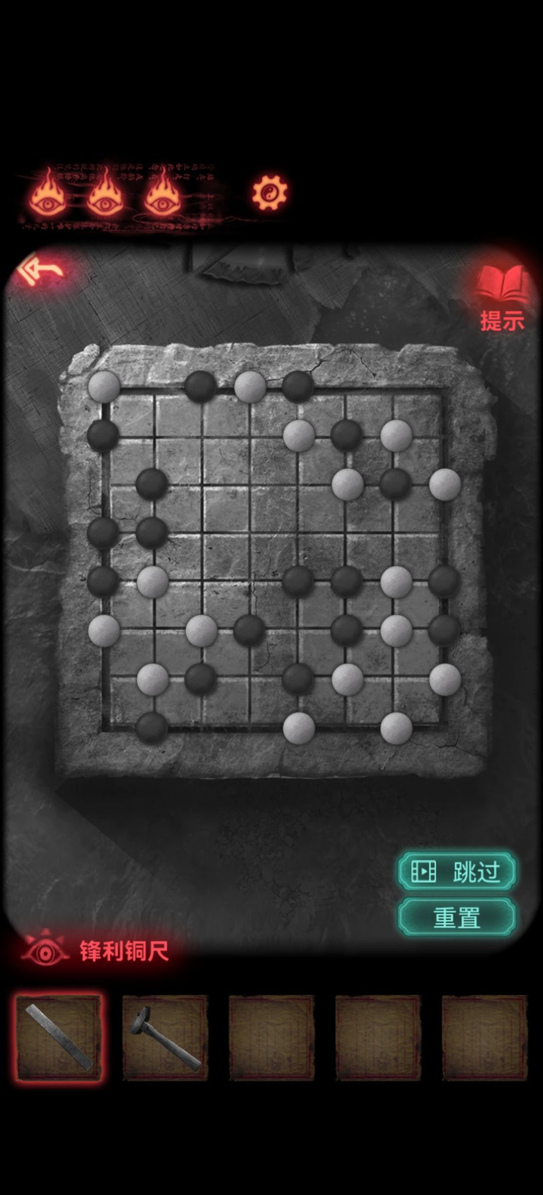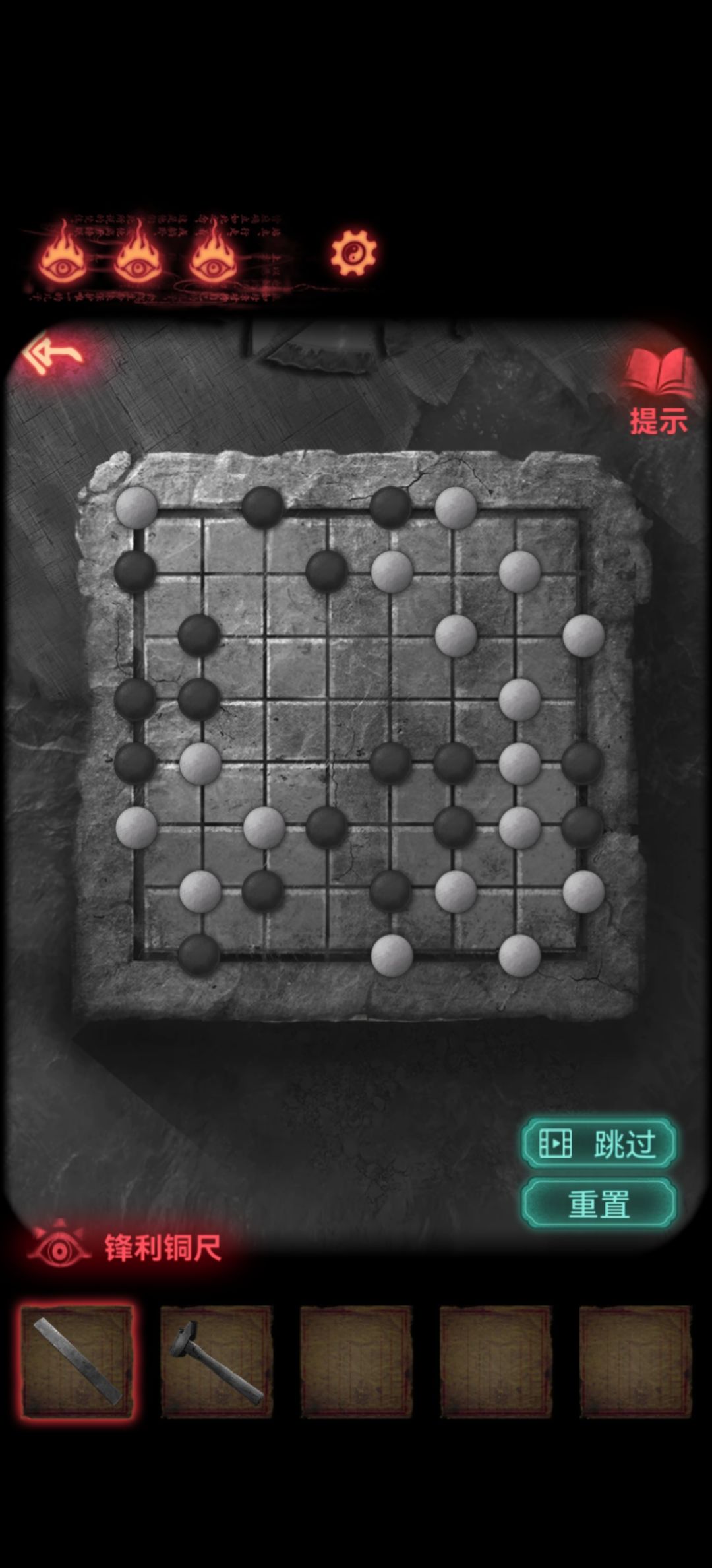 剧情后面对着一个黑白的世界,别担心手机没坏,你看提示还是红的嘛~开局自带铜尺一把,在之前用硬纸板撬墙的地方拿到锤子,左边桌子上八卦算盘暂时没线索不用管。