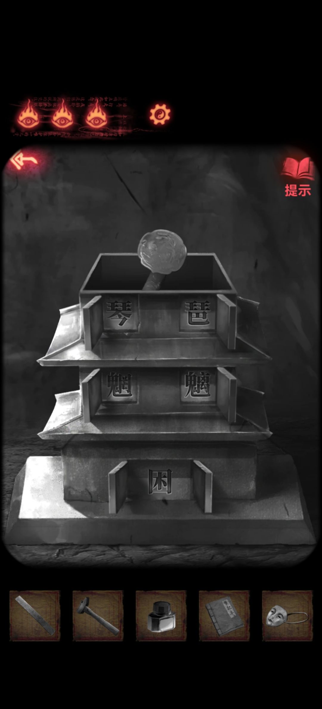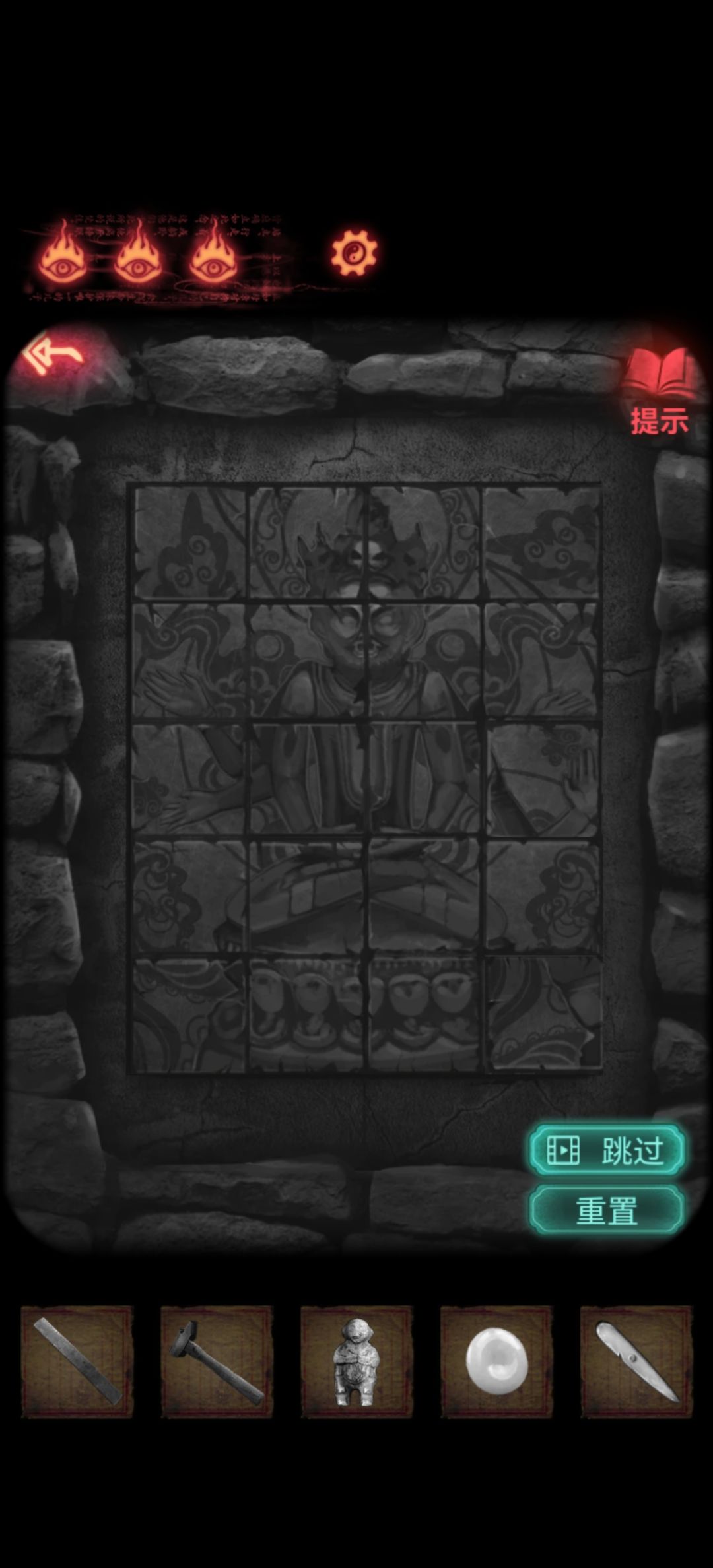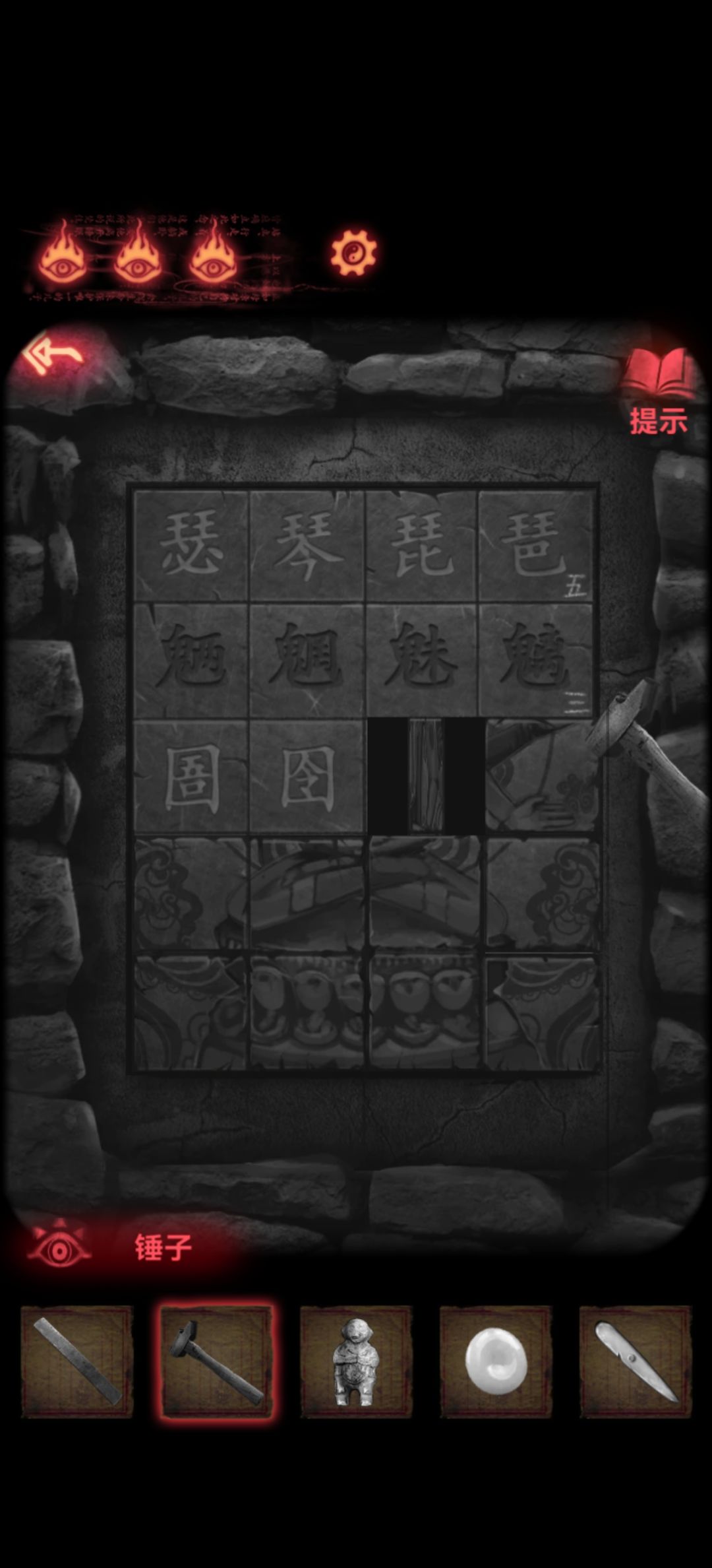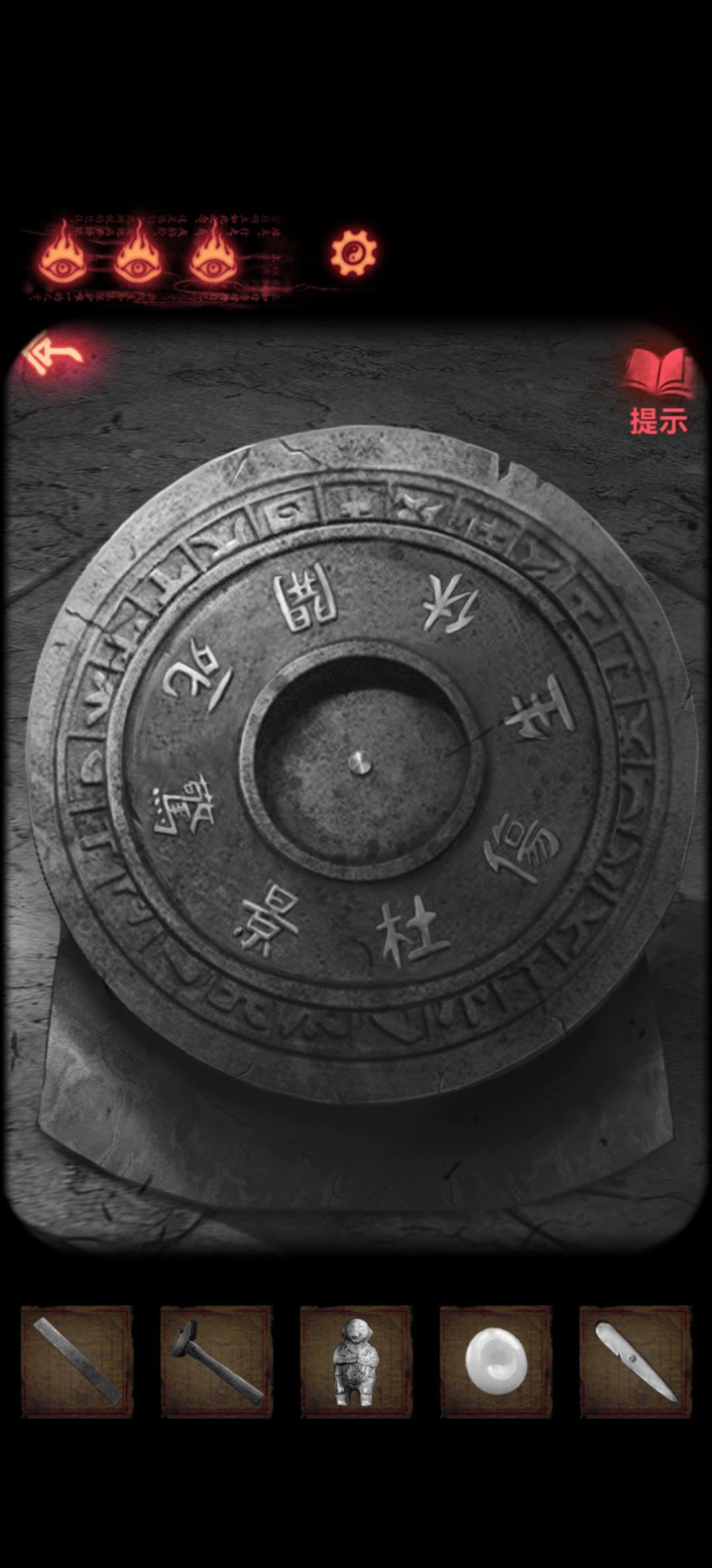 旁边的塔密码也调整一下琴琶/魍魑/困,然后塔顶自动打开拿到玉如意,现在解封大刀的东西就只少一面八卦镜了。