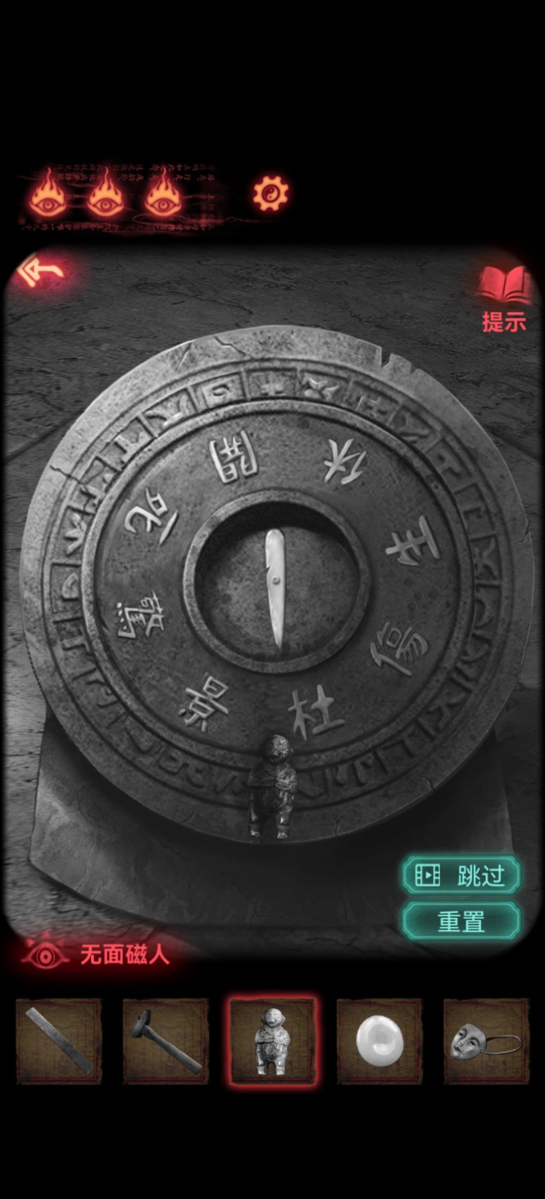来右下棋盘开始下棋,先下白色吃掉黑色,再下黑色吃掉白色,然后白吃黑,黑吃白,白吃黑,黑吃白,白吃黑,黑吃白,然后就结束了,棋盘下面拿到无面磁人。