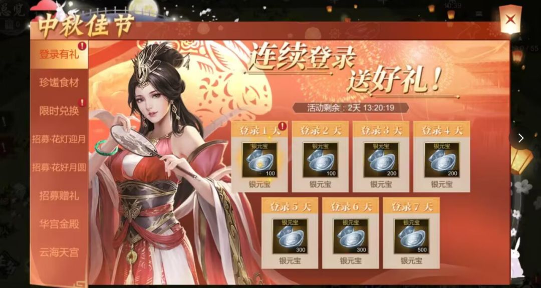 繁星耀九洲,明月寄相思;千里人相隔,两心遥相依。各位君上中秋快乐,此番佳节我们特准备了许多精彩活动与福利,邀请诸位君上前来赏月游玩。
