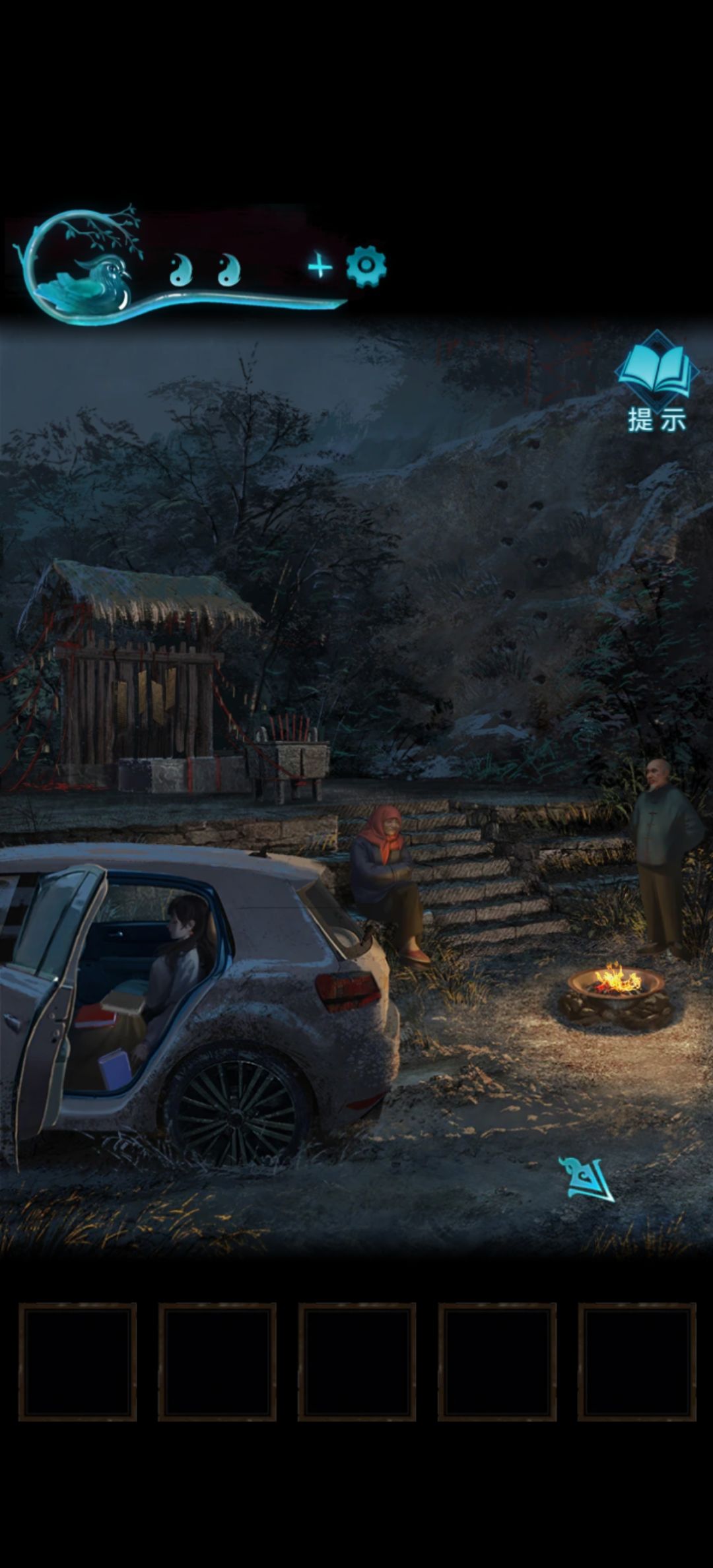 处理完后柜子打开下面出现一块龟甲,还记得开始说这里用火烧龟甲来算卦特别灵,所以我们把龟甲拿出来往汽车旁的火盆一扔就行了,然后用火钳把烧好的龟甲拿出来让婆婆帮忙看看,然而婆婆还是让我们自己看啊!