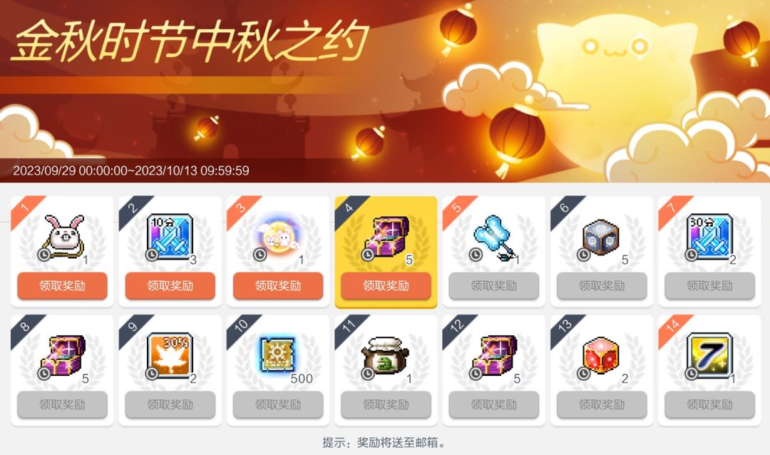 邀请亲朋好友,共赏千里明月,获得经验值增加券等奖励。