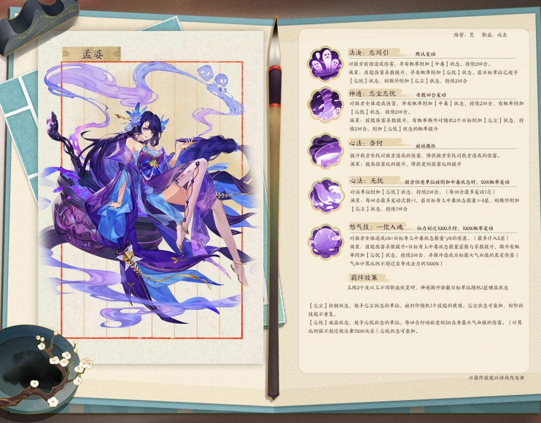 冥界谁都知晓孟婆,她的招牌甜汤拥有让人失忆的奇效,汤勺挥洒之际,敌方会受到噬骨之痛,甚至还会遗忘曾烂熟于心的法诀。