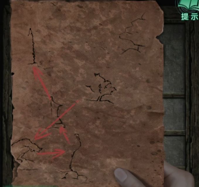 调查窗子提示不能用手戳出洞,那就用圆珠笔吧,戳完有小高能不要被吓到,然后女主一把就把小洞扩大为大洞,通过洞送出一张密码纸,密码纸上的图案就是进门院子左边的枯石装饰物,所以结合图案我们应该按的顺序是右上角树-左下角树-右下角鸟-中间小亭子-左上角塔楼。
