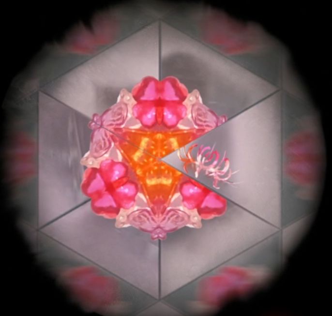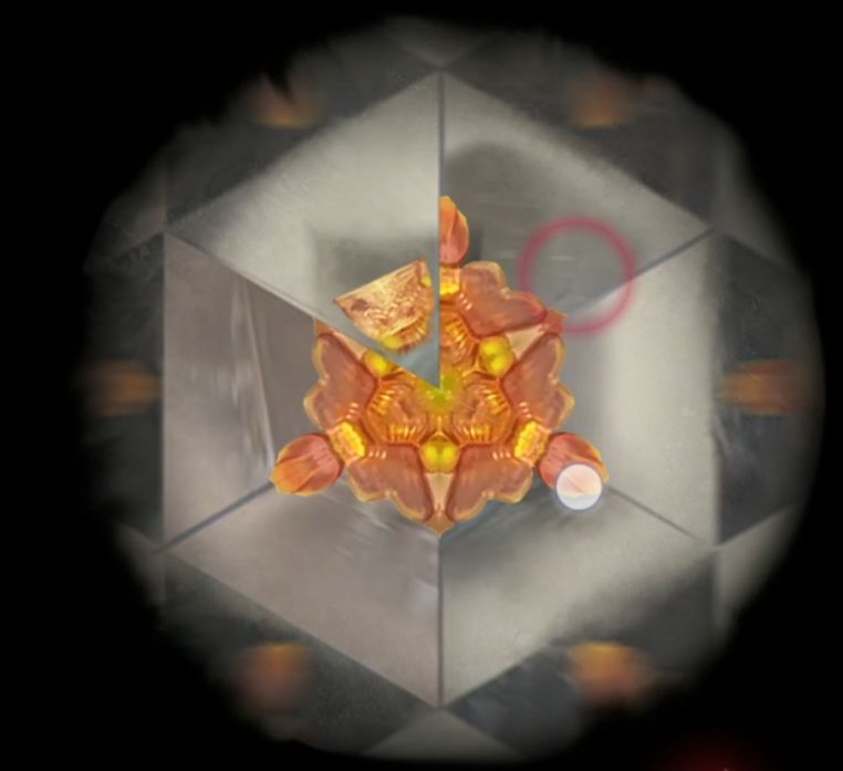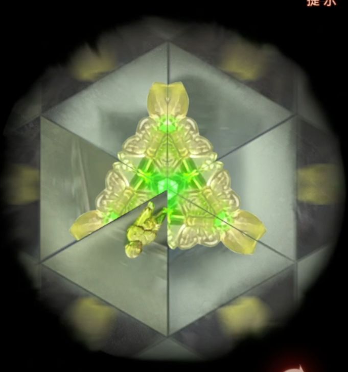 来到院子里把小钥匙插进右侧门的锁孔中,然后用中间有六边形洞的象棋当做钥匙把手转动钥匙打开门,进入新的房间书房,左边柜子上有个万花筒,需要记录一下每一次出来的东西和位置,杯子在左上角,彼岸花右边,小石像左下角,花瓶右下角,金刚杵右上角,眼睛到处都是,啊不对没有眼睛,眼睛是高能,高能过后还有个铃铛在左边。