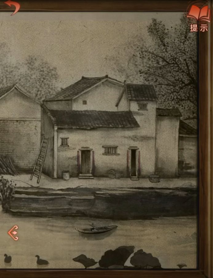 先捡起右边地面上的毛笔,用钥匙打开左边房门外的锁就能开启新场景了,这应该算是大门了吧,门外熟悉的孔明灯,碰一下看到当年的大火场景,剧情后点一下孔明灯左侧图案有清晰版,这就是后面要用到的线索了先记下来。