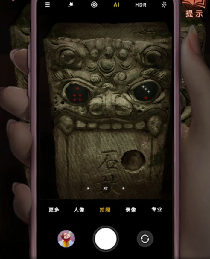 这里没有太多可以现在调查的,转身能看到门洞了,但是出不去,拿出手机能看到远处石敢当的双眼明晃晃的,走近石敢当再次拿出手机就能看到密码了,密码比较快所以建议还是记录一下吧,记得时候要注意把每次左右眼的记在一起,这应该是麻将牌吧可惜米雪是不认识的只能记图案了。