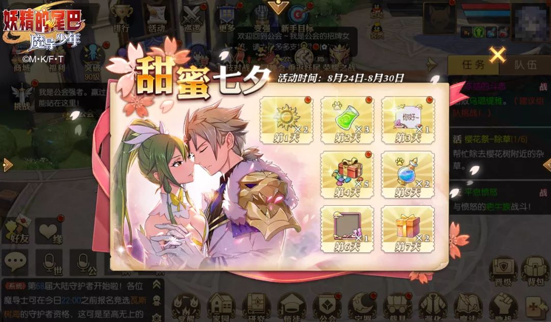 ★ 七夕活动来袭!8月24日-8月30日期间开启七夕相关活动,各位魔导士快一起体验甜蜜蜜的七夕节日吧! ·「甜蜜七夕」——令人羡慕嫉妒恨的七夕又来临了!每日登陆游戏可以领取甜蜜蜜的七夕专礼哦!