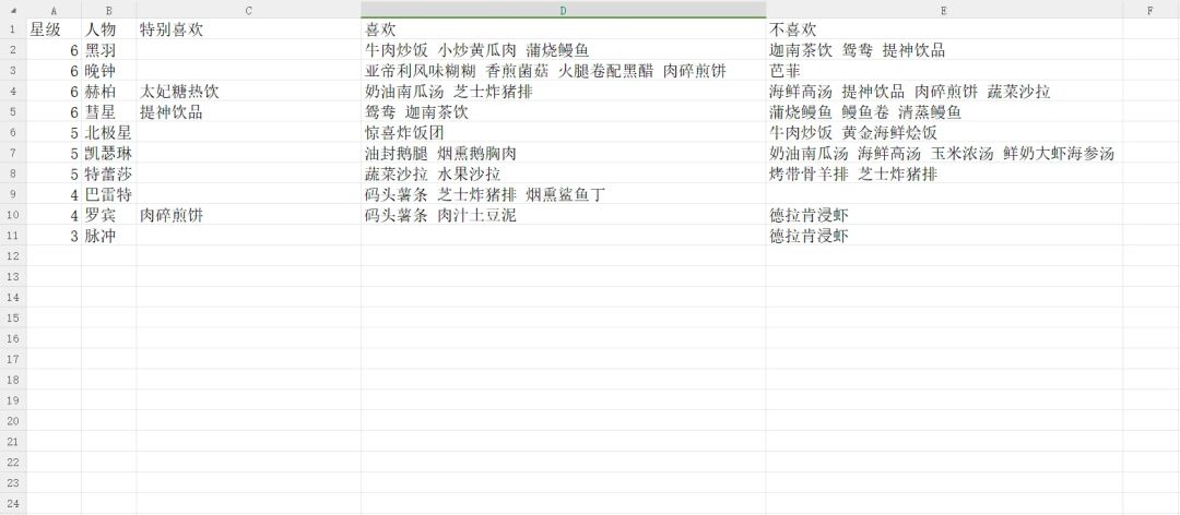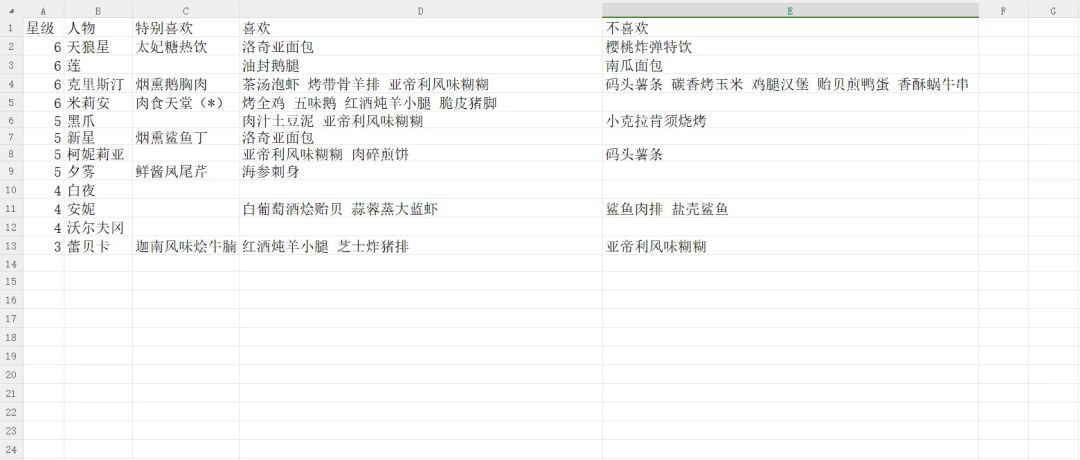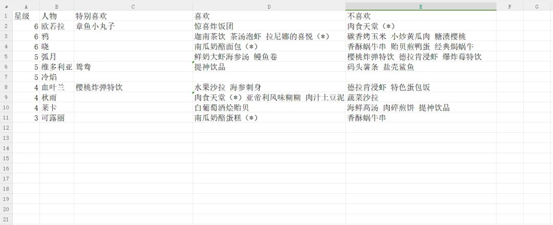 《银河境界线》特勤食物喜好表