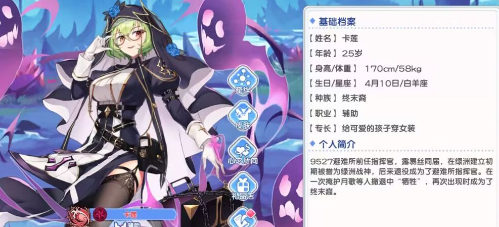 卡莲,是终末裔辅助型角色,拥有高额的护盾和增伤能力,还能给予对手减益状态,是一个非常推荐抽取的角色。
