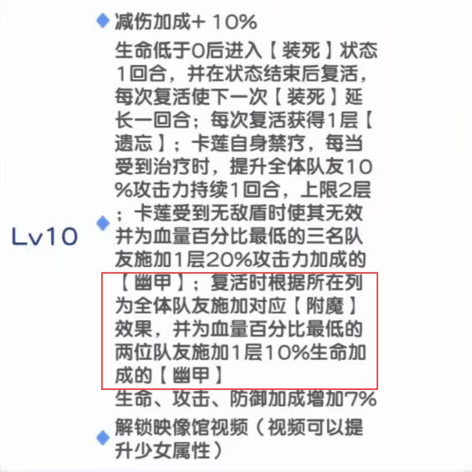 卡莲的五星觉醒是字数最多的(bushi),是buff最可怕的地方