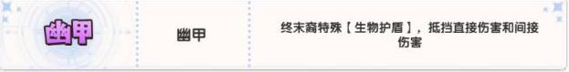 【幽甲】:看效果跟普通的生物护盾没什么不同,确实也没有什么不同,就是名字不一样。类似的还有露妮娅的【圣壁】,但【圣壁】还是有特殊效果的,能回10%的生命。