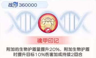 【魂甲印记】(强推★★★)效果:附加的生物护盾量提升20%,附加生物护盾时提升目标10%伤害加成持续2回合。