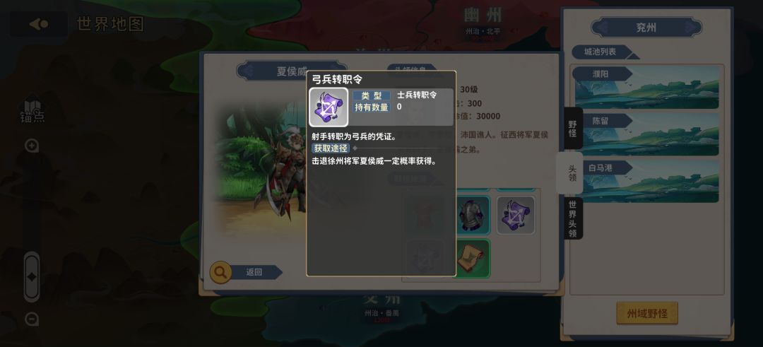 这里需要着重说的就是三个兵种的专职道具了,弓兵,弩兵,刀兵,枪兵,轻骑兵与重骑兵相对应的卷轴。转职二选一,看个人喜好吧,兵营里可以看武备的具体数据,比如弓箭3格,弩箭2格,马刀移动范围-1之类的。