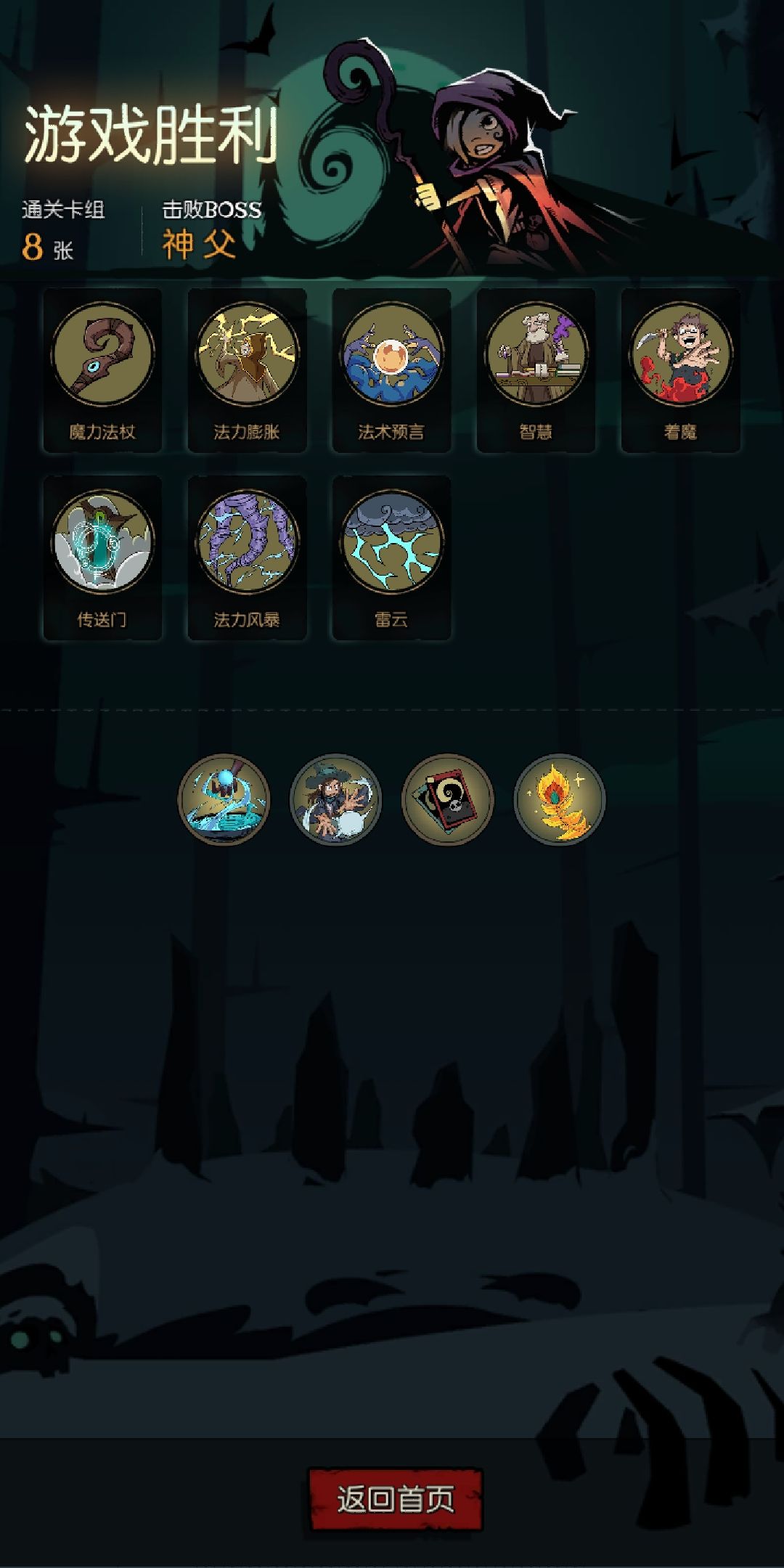 这个套路最少的牌可以有6张(那两张不需要的牌可以去掉)如果初始法力刷的够多(有50以上),这个套路最少只需要两张牌就可以通关(雷云+法力膨胀),想追求极限的小伙伴们可以试一试哦(毕竟我刚玩这个游戏,如果有小伙伴两张牌通关了记得给我看哦⊙∀⊙!