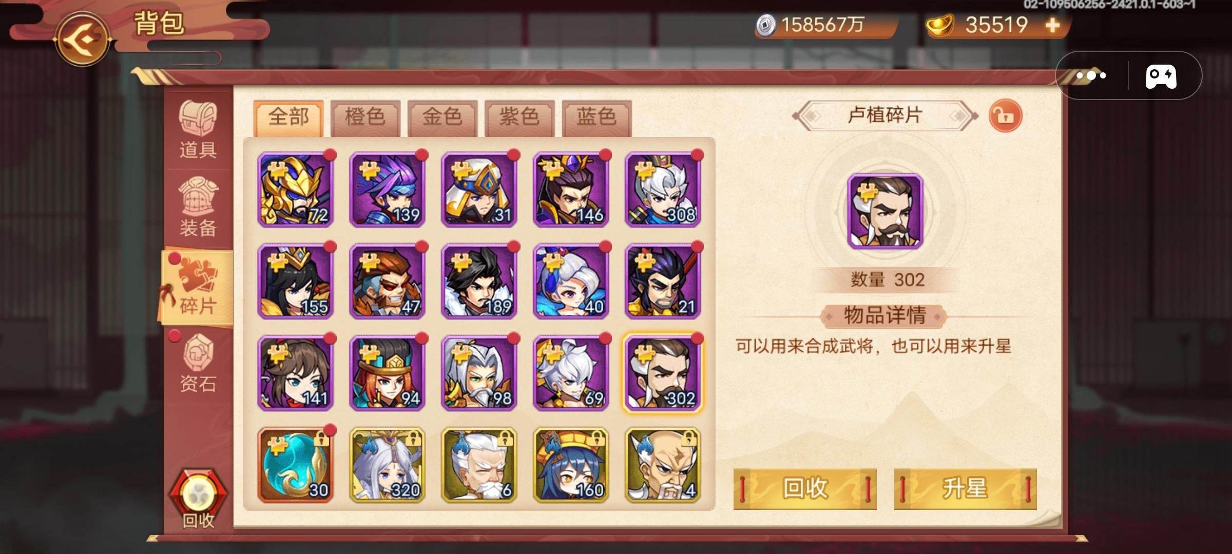 听你们说花多少万元宝几星神将到手,结果一堆垃圾,十几个不一样神将碎片都合都合不了。