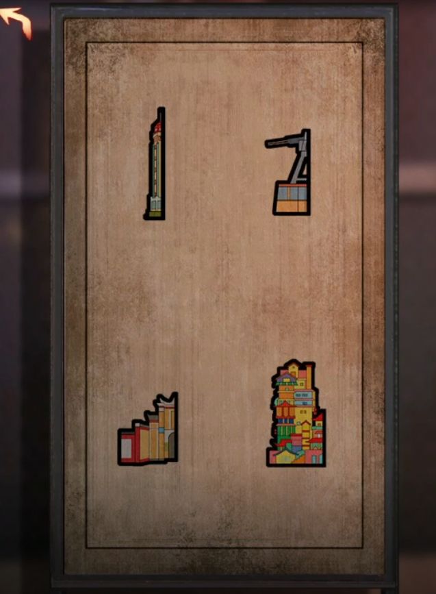 但是不着急回去调查盒子,先顺便把能解密的地方都解开,墙上有个半个建筑的木板,这里米雪特地去查了下左上是解放碑,右上角是长江索道,左下角是磁器口古镇,右下角是洪崖洞,都很想去啊!其实米雪一直都在策划重庆之旅,可惜遇到了疫情然后各种各样的事情没能成功出行,希望疫情早日平息。