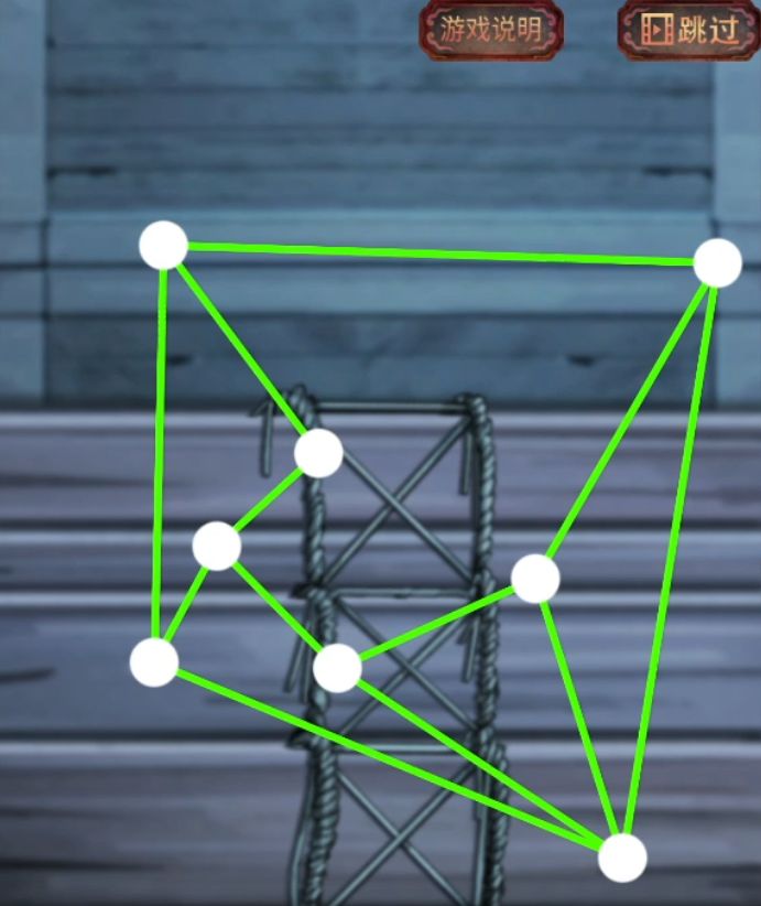 到了后没剧情直接解密,左边木箱子是个解绳子小游戏,注意不要拖到太靠边,否则就像米雪一样卡住拖不回来,完成后可以拿到几块木板。右边是个水井要找桶,旁边的门上有个轮盘形状图案,其他没有线索了可以上楼了。