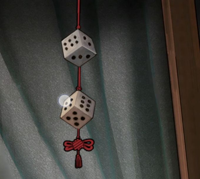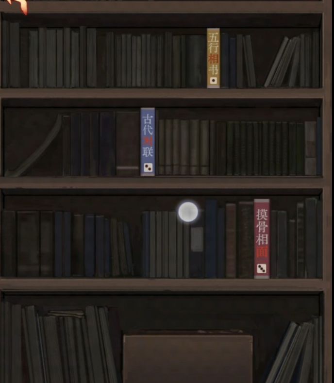 这时候再观察一下书柜,上面有几本书字是红色的,跟我读:相~对~论~咳咳读错了!是相对面!也就是说这是一道翻译题,我们要做的是把盒子下面的骰子调整为上面骰子相对面的数字,而怎么确定骰子相对面呢就是观察神女床上吊坠了。