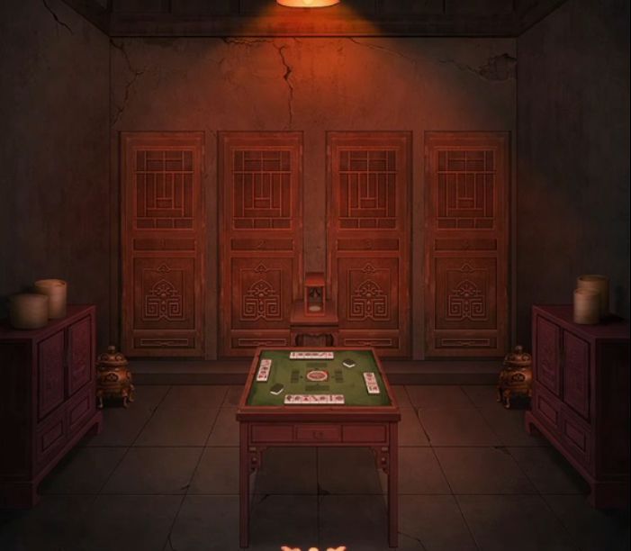 第一个屋子左右都是两个竹笼,所以把那个像朵花花的麻将牌都点出来,然后点中间红色按键,骰子停留在了点数3,那么我们要进的就是从左到右第三个门。以此类推第二个门是仙鹤点出左边鹦鹉图案的麻将,骰子停留在了1,进入第一个门。左右都是元宝,点出所有写着发的图案,骰子停留在4,进入第四个门。左右是冥币,点出写着一万的麻将,骰子停留在2,进入第二个门。