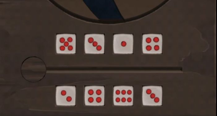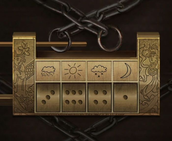 调整右边柜子密码到7109打开柜子拿到一个骰子,这样密码盒的骰子就齐了,上面是不能调整的,下面是需要调整的,所以我们需要的是一排或者把下面调整为和上面相关的密码。