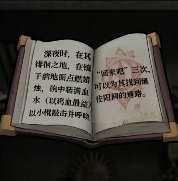 先用打火机点燃蜡烛,然后用玻璃罩罩住蜡烛,因为有说旁边窗子破了个洞有风吹进来嘛,然后来到镜子前,在画了x的位置放碗,倒入红墨水(总感觉哪里不对又好像没有),用圆珠笔敲碗就能继续剧情了,注意有小高能哦,小高能后镜子上写了57就是患者编号了。