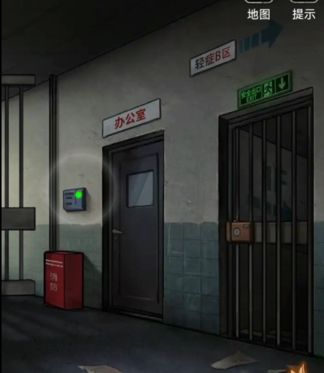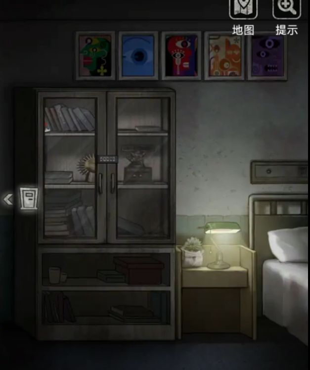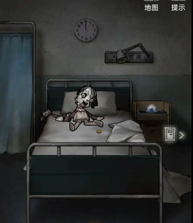 出门用刚刚医生办公室的钥匙打开2009号病房大门,进去掀开床上白床单(没高能)拿走人偶旁黄色星星按钮,旁边床头柜拿走空碗和下面的红色小圆按钮,这里注意游戏设置的转向很奇怪,点下面不是出门而是转向哦,右边门的图标才是出门,后续都是这样的要注意。