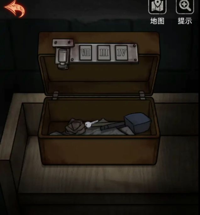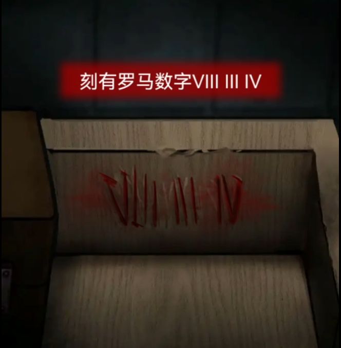 右下角刚好有个四位数密码箱,所以试一下输入2011果然打开了,拿走最上面的口红,刚刚抽屉里也有红色痕迹所以用口红去涂抹一下,发现是三位罗马数字密码834,床头柜上面的盒子就是罗马数字密码,所以调整为834打开盒子,获得一把钥匙。