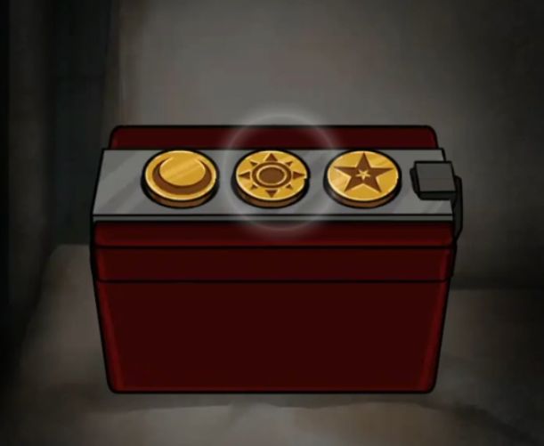 这里我们已经拿到2011病房的很多线索了,所以先回来把三个金色按钮给床上的红盒子装上,盒子上是有图案的,第一个是月亮,第二个是太阳,第三个是星星,装好后盒子打开里面是个图案玩偶,拿走玩偶的玻璃罩。