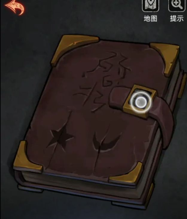 然后开始解密环节,桌子下面有一本红皮日记本,把奇怪的小零件放在密码锁上就可以开始解密了,本子上有密码提示左边是五角星右边是月亮,调整一下日记本让最上面的密码是左边五角星右边月亮就能打开了。